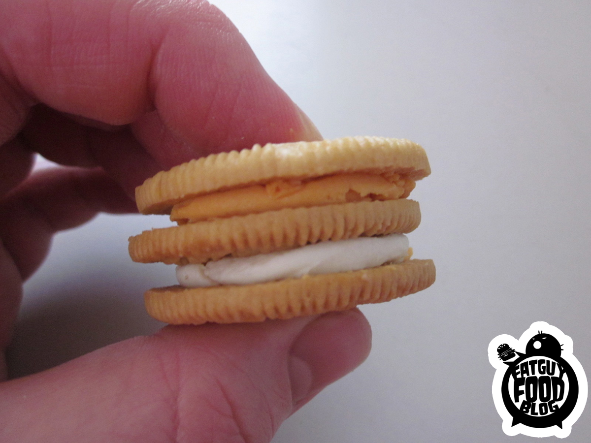 The orange flavor in these is strong, so the "vanilla" frosting and golden cookie have to really work hard to match it. They try, but they don't succeed. These are really just orange Oreos (Orang-eos?) with a slight creaminess to them. So for being labelled as creamsicle, these fail, but they are still pretty delicious. How many cookies have you had with orange frosting? I can't think of any. Definitely buy these. They are very good.